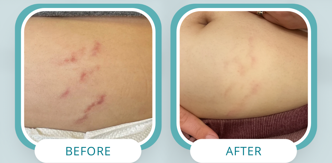 Disclaimer: Individual results vary. Non-invasive stretch mark treatments support skin texture and appearance but do not guarantee elimination of stretch marks.